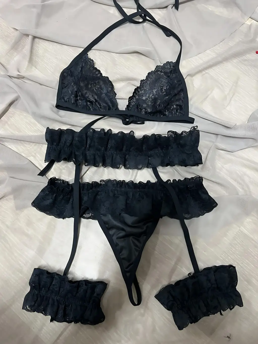 Bacak Bantlı Dantel Fantezi Jartiyer Takım