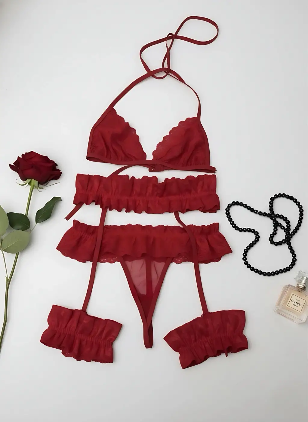 Bacak Bantlı Dantel Fantezi Jartiyer Takım