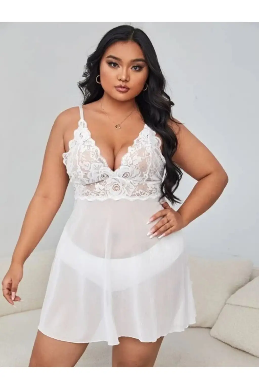 Büyük Beden Dantel Detaylı Tül Gecelik