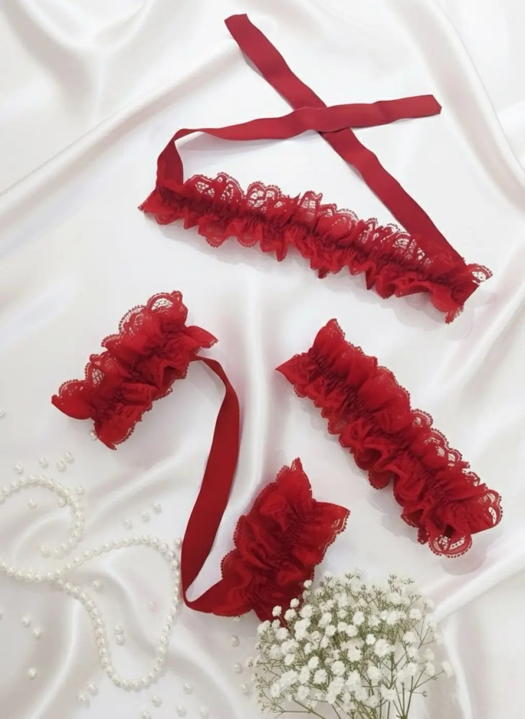 Dantel Fantezi Set (Bacak Bandı-Göz Bandı-Kelepçe)