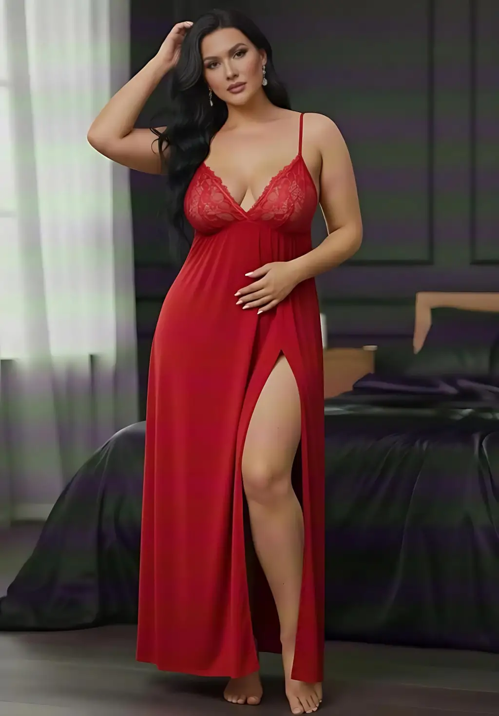 Dantelli Transparan Uzun Yırtmaçlı Gecelik
