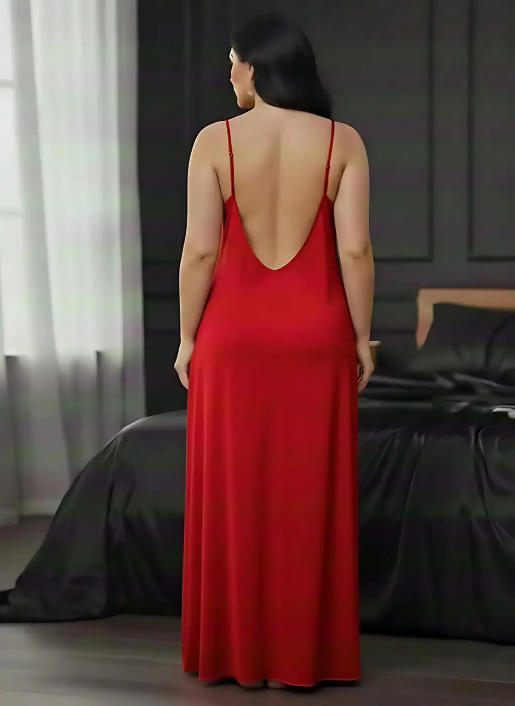 Dantelli Sırt Dekolteli Uzun Yırtmaçlı Jarse Gecelik