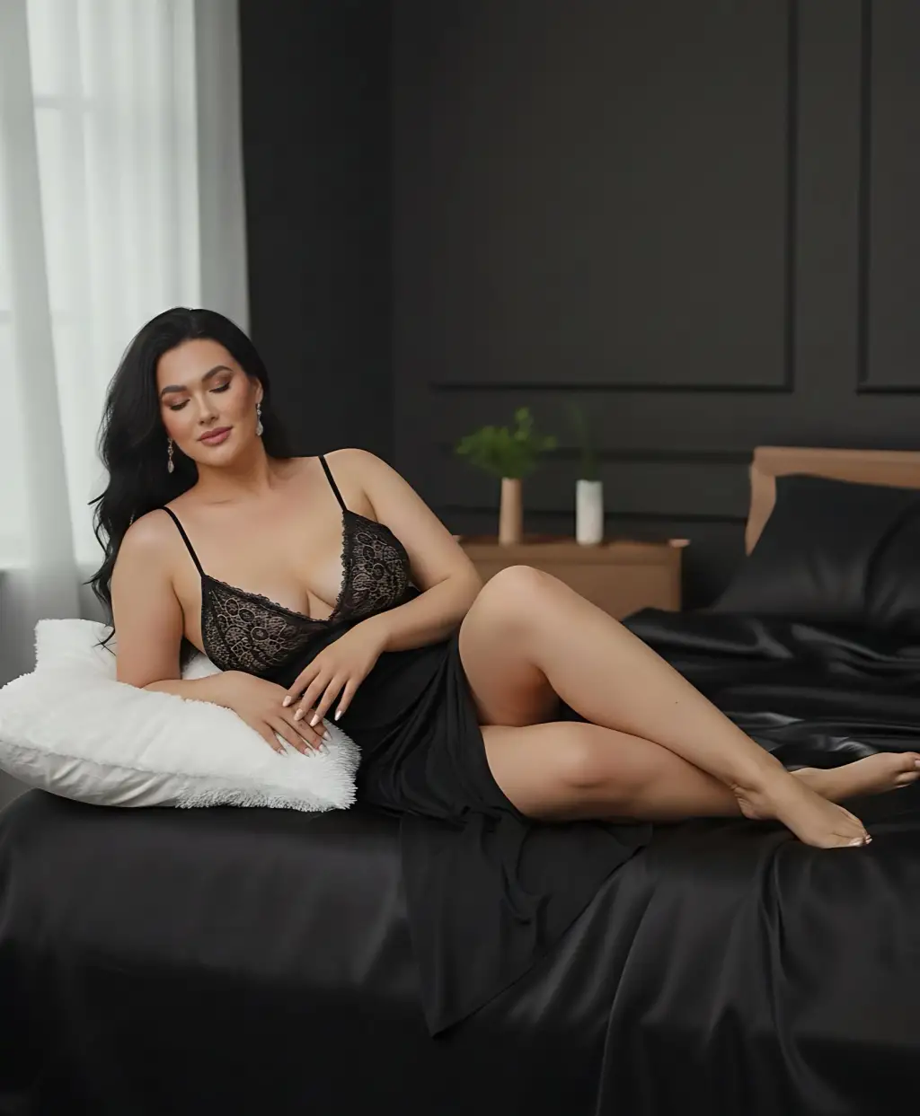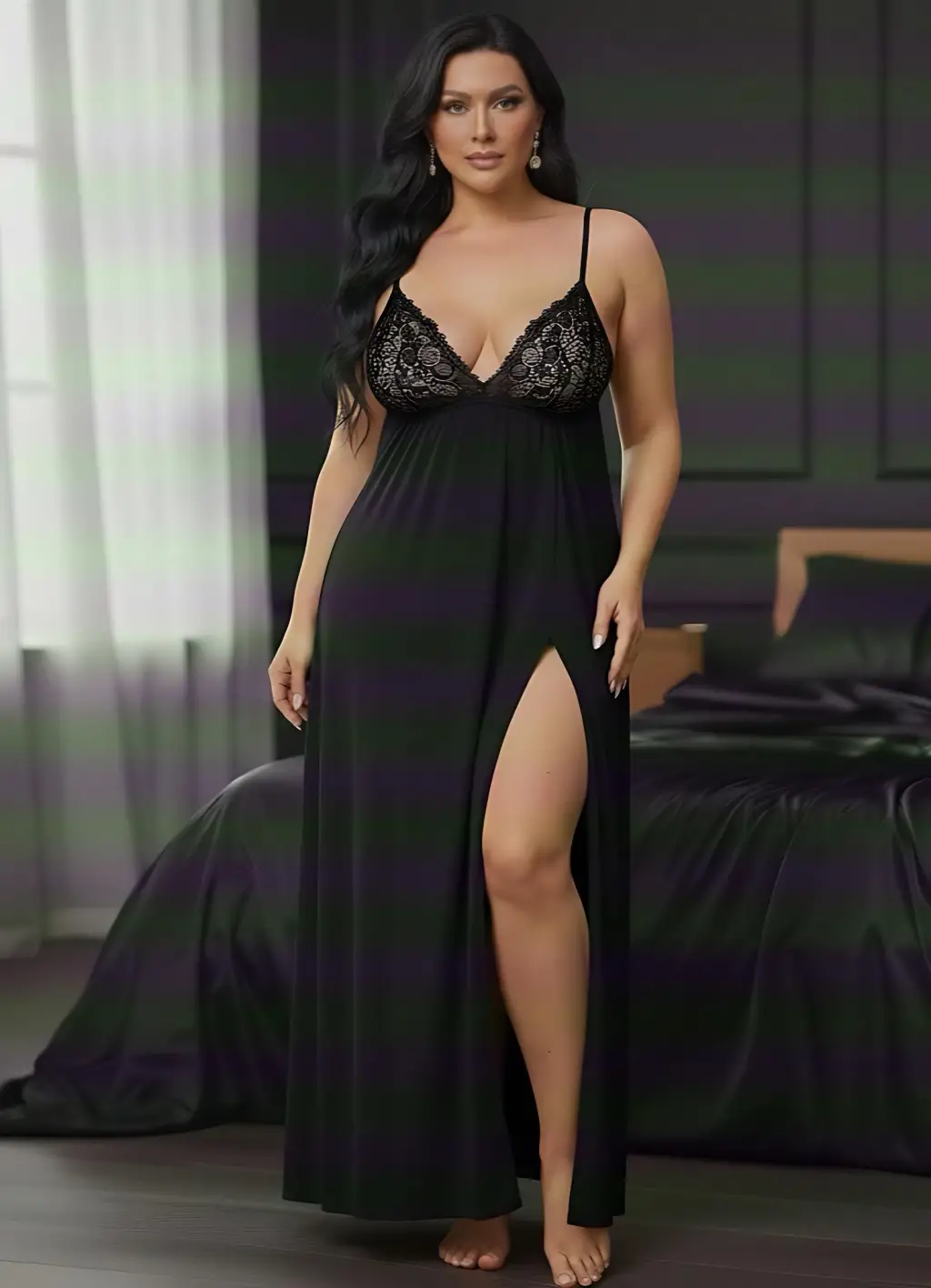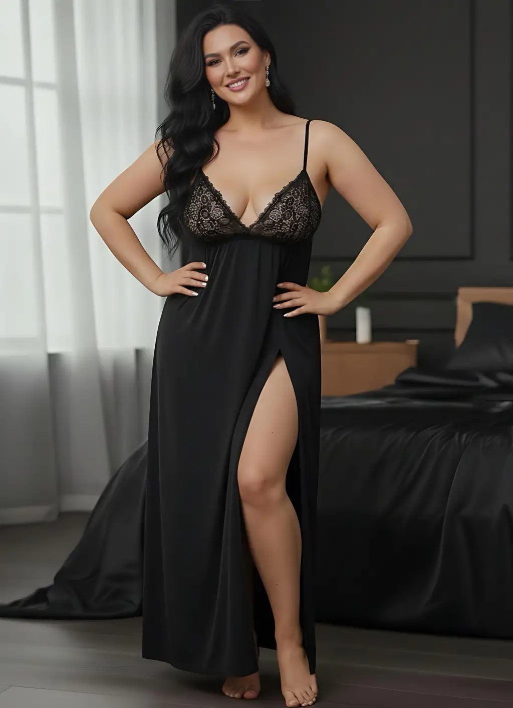 Büyük Beden Dekolteli Fantezi Jarse Gecelik