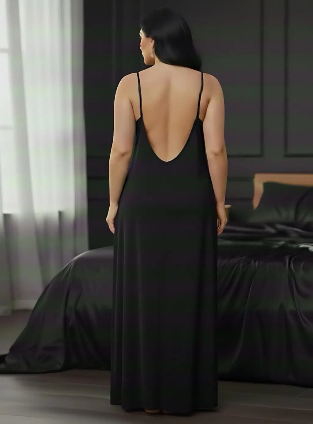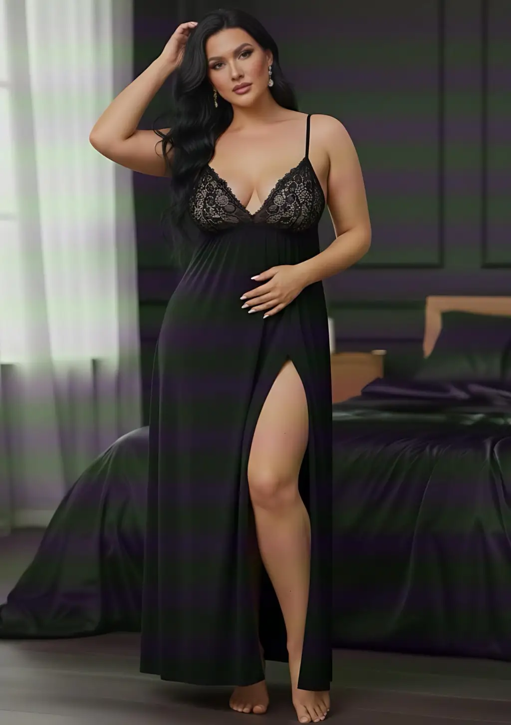 Dantelli Sırt Dekolteli Uzun Yırtmaçlı Gecelik Jarse Gecelik